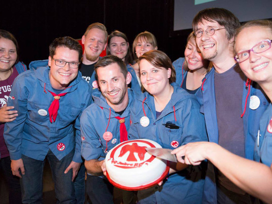 Am 19. Juni 2015 fand der große Festakt anlässlich des 90-jährigen Bestehens der Roten Falken Österreich im Marxpalast in Wien statt. Hunderte aktive, zukünftige und nicht mehr aktive Funktionär*innen aus ganz Österreich kamen bei einem fulminaten Fest zusammen und feierten den 90. Geburtstag ihrer Organisation. Auch internationale Freund*innen nahmen an den Feierlichkeiten teil. Natürlich zog sich dieses runde Jubiläum wie ein roter Faden durch das gesamte Jahr. Ob bei der Bildungsreise nach Israel, der politischen Wanderung durch die Karpaten oder beim innovativen Zeltlagerpädagodik-Seminar „Tent it up!“ in Ebensee, der Geburtstag der Falken war allgegenwärtig. Beim Sommerlager 2015 im Falkencamp Döbriach ließen es die Roten Falken dann noch einmal richtig krachen. Unter dem Motto „Gestern. Heute. Morgen.“ wurde aber nicht nur gefeiert, sondern es wurde auch die Gelegenheit genutzt, um sich mit der Geschichte der Roten Falken auseinanderzusetzen, den Ist-Zustand zu analysieren und an den gemeinsamen Vision für eine gerechtere Welt zu arbeiten. Zeitgleich fand in Döbriach im Übrigen auch ein bundesweiter Junghelfer*innen-Kurs statt. Im Rahmen des Kurses werden jungen Menschen ab einem Alter von 14 Jahren Fertigkeiten, Kompetenzen und pädagogische Ansätze vermittelt, die sie befähigen selbst Gruppenstunden zu leiten.
