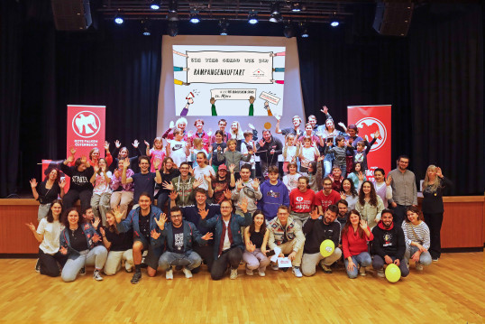 Beim Kampagnenauftakt in Wien helfen viele Organisationen mit. Der Spielbus der Wiener Kinderfreunde ist da, die Pfadfinder Baumgarten unterstützen und das Jugendreferat der Arbeiterkammer Wien führt den Film „Ihr könnt uns alle mal..!“ vor. Die Darsteller*innen und Autor*innen des Filmprojektes stehen Rede und Antwort. Sie zeigen eindrucksvoll auf, wie schwierig es für Menschen mit Migrationserfahrung in Österreich ist, gesellschaftliche Teilhabe zu erlangen.
